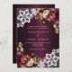 Für eine elegante und romantische Hochzeit. Bordeaux mit bordeauxroten, rosa und pfirsichfarbenen Blumen, Rose und Spitzen. Personalisieren Sie Ihre Namen und Details und fügen Sie diese hinzu.