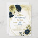Schöne marineblaue Elfenbein-Blume mit goldenen Blätter auf einer goldgeometrischen Rahmen Geburtstagsfeier Einladung. Die Einzelheiten des Glitzer werden simuliert. Für weitere Informationen klicken Sie bitte auf die obige Sammlung oder kontaktieren Sie mich.