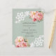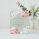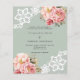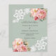 Für eine elegante und romantische Hochzeit. Ein wunderschöner grüner Hintergrund mit rosa und Rose goldenen Blumen, Rose und Spitzen. Personalisieren Sie Ihre Namen und Details und fügen Sie diese hinzu. 1 Blatt = 1 Einladung mit Druckkante bis Kante.
