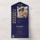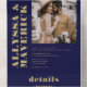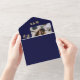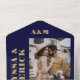 Elegant kühl schlichte Boho schicke Marine Blau und Gold Foto Hochzeitseinladung mit einem modernen kühnen Schriftart, ein Foto und alles in einem Detail mit qr-Code.