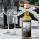 Diese Mini-Weinflaschen-Etiketten zeichnen sich durch ein schlichtes, modernes und minimalistisches Design aus. Das Foto auf schwarzem Hintergrund und die Beschriftung "Liebe & Dank" sowie die Namen des Ehepaares und das Hochzeitstermin sind ebenfalls vorhanden. Es gibt auch Platz für die Art des Weins oder andere Flascheninhalte. Ideal, um besonderen Gästen zu danken.