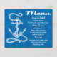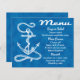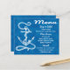Fügen Sie Ihren Tischen etwas Spaß mit dieser bezaubernden blau-weiß-nautischen Karte hinzu. Diese niedliche Speisekarte bietet einen handgezeichneten weißen Schiffsanker, der Ihre Speisekarte in Ergänzung zu weißem Drehbuch und leicht lesbaren Schriftart mit einem marineblauen Aquarellhintergrund, der an den Ozean erinnert, hervorhebt. Dieses Ankermenü eignet sich hervorragend für * Hochzeiten im Sommer, am Strand und an der Küste * Veranstaltungen * Party * Spendenaktionen & Wohltätigkeitsorganisationen * Preisverleihungen