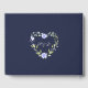 Elegantes Kartendesign mit zartem Aquarell-Blumenrahmen, Blumenspalte, vergoldetem Rahmen und Konfetti aus Imitat auf weißem Hintergrund. Auf der Rückseite blüht das Herz auf Mitternacht blauen Hintergrund. Verwenden Sie das Tool Personalize, um Ihre Informationen hinzuzufügen, Schriftart zu ändern, die Farben des Schriftartes zu ändern. Für passende Artikel, besuchen Sie bitte meine Aquarell Blume Gold Frame Collection.