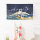 Moderne Vintage Elegant Wedding Welcome Sign Banners Template - Blue Green und Imitate Gold Foil Watercolor Gebirge Landschaft. Diese Designs können für Ihren Besondere Anlass Personalisiert sein und wären perfekt für Ihre Hochzeit, Brautparty, Engagement Party, Geburtstagsparty und viele weitere Besondere Anlässe.