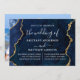 Moderne elegante Wasserfarbe Blau und Gold Marmor Agate Geode Einladung Hochzeit. Trendy Kalligrafie Script. Ein paar Foto zurück.
