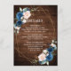 Hochzeitsfeier mit blauem Rost, rustikales Holz Begleitkarte
