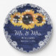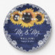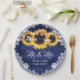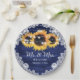 Vervollständigen Sie Ihr marineblaues Land, Ihren Garten, Ihren Hinterhof oder Ihre Stallhochzeit mit diesen rustikalen marineblauen Sonnenblumenblumen-Hochzeitszettel-Tellern mit Sonnenblumen-Blume, Lichtern und Blumenzauber auf einem Stallholzhintergrund. Matching Artikel zur Ergänzung dieser marineblauen rustikalen schicken Blumenzettel Teller. Individualisieren Sie sich ganz einfach auf jeden Anlass.