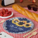 Hochzeitsfeier mit blauem, rustikalem Holz Pappteller