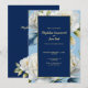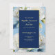 Feiern Sie Ihren besonderen Tag mit dieser eleganten Marineinfanterie und der himmelblauen Hochzeitseinladung mit weißem Rosenhintergrund. Die romantischen Aquarelltöne und das kühne Marinecenter mit goldenem Rahmen schaffen ein elegantes, zeitloses Ambiente - perfekt für feierliche Hochzeiten oder Hochzeiten mit blauen Themen.