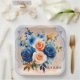 Hochzeitsfeier mit blauen und pfirsichfarbenen Blu Pappteller