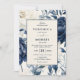Dusty Marine Blau & Weiß Blumen Aquarell Hochzeit Einladung