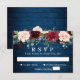 Burgundy Navy Blush Watercolor Blues Hochzeitskarte RSVP.