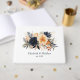 Navy Blau, Bronze Orange und Champagner florale Sommer Hochzeitsgast-Buch. Ideal für eine Hochzeit im Sommergarten.