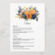 Navy, Bronze Orange und Champagner florale Hochzeitsmenü im Sommer. Ideal für eine Hochzeit im Sommergarten.