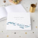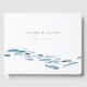 Dieses elegante Gästebuchdesign für moderne Hochzeiten am Strand, minimalistische Feiern an der Küste oder schicke Abendessen an der Probe bietet eine Schule von blauen Aquarellfischen, die am Boden schwimmen. Personalisieren Sie mit zwei Zeilen benutzerdefinierten Text in klassisch marineblau Schrift, und fügen Sie zusätzlichen benutzerdefinierten Text in den Rücken.
