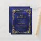 Für eine elegante Hochzeit im Gatsby-Stil. Ein marineblau-farbener Hintergrund, der mit einem vergoldeten Rahmen im Deko-Stil mit Blume geschmückt ist. Personalisieren Sie Ihre Namen und Details und fügen Sie diese hinzu. 1 Blatt = 1 Einladung mit Druckkante bis Kante.