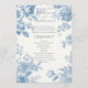 Das elegante französische Städtchen Blue Floral Wedding mit dem Thema Hochzeit am Strand bietet eine dustig blaue Kulisse, stilvolle Drehbücher und schicke Schriftart-Details, moderne und romantische Details, ideal für moderne französische Hochzeiten, botanische Hochzeit in Urlaubsort, Vintage Hochzeiten mit Boho-Thema. Wenn Sie ein anderes passendes Produkt oder eine Anpassung benötigen, wenden Sie sich bitte per E-Mail an Zazzle.