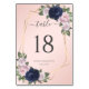Elegante geometrische marineblaue und blühende Tischnummern. Matching-Elemente verfügbar.