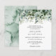 Eine botanische grüne Aquarell Eukalyptus Hochzeitseinladung. Ein eleganter, grüner Eukalyptuskranz hängt über dem schwarzen, eleganten Text. Personalisieren Sie Ihre Veranstaltung, indem Sie Ihre vollständigen Veranstaltungsdetails hinzufügen.