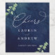 Schönes, dunkelblaues Hochzeitsweinlabel mit wunderschön bemalten Aquarellgrün. Vollständig anpassbar!