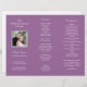 Maßgeschneiderte, lavender Trauung Zeremonie Programm Vorlage mit Foto Inhaber. (Kann in beliebiger Farbe hergestellt werden). Diese dreiseitige Textkonfiguration besteht aus drei Bereichen, in denen persönliche und feierliche Informationen hinzugefügt werden können, darunter ein Bild der Braut und des Bräutigams. Dieses Papier kann nachgerüstet werden und muss nach dem KAUF vom Kunden gefaltet werden.