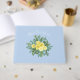 Schöne hellgelbe und blass blaue Rose und blühende Hochzeitsfeiern mit reichlich Grün. Ideal für ein Blumenthema oder eine traditionelle weiße Hochzeit im Frühling oder Sommer. Passen Sie die Farbe und den Text an, um diese Hochzeit einladen zu lassen!