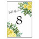 Hochzeitsfeier mit hellgelber Pastelle und Rose Tischnummer
