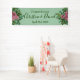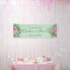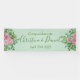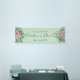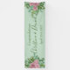 Schönes hellrosa und blassgrüne Rose und blühendes Hochzeitsbanner mit üppiger Vegetation. Ideal für ein Blumenthema oder eine traditionelle weiße Hochzeit im Frühling oder Sommer. Passen Sie die Farbe und den Text an, um dieses Hochzeitszeichen zu Ihrem eigenen Banner zu machen!