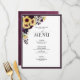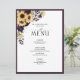 Mit diesem angesagten 6.5"x 8.75" Menü-Design mit einem Blumenstrauß aus Pflaume lila, Sonnenblumen und botanischer Vegetation schaffen Sie den perfekten Empfang-Rahmen. Er ist in Pflaume lila umrahmt. Personalisieren Sie Ihre Details mit schönen modernen handgeschriebenen Kalligrafien. Ideal für, aber nicht beschränkt auf diesen Garten und Garten Hochzeit. Teil einer Hochzeitssuite, von der wir hoffen, dass Sie so viel Liebe wie wir tun: https://www.zazzle.com/collections/elegant_sunflower_plum_purple_watercolor_script-119479724198769053 Copyright Anastasia Surridge für Elegant Invites, alle Rechte vorbehalten.