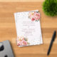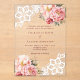Für eine elegante und romantische Hochzeit. Ein transparenter Hintergrund mit rosa und pfirsichfarbenen Blumen, Rose und Spitzen. Personalisieren Sie Ihre Namen und Details und fügen Sie diese hinzu.