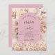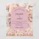Eine moderne, stilvolle und romantische Einladung für eine Hochzeit. Eine staubige Rose mit rosa Gewölberahmen, mit sanften, leicht vergoldeten Rose, rosa und cremefarbenen Blume dekoriert. Personalisieren und fügen Sie Ihre Namen und die Details. 1 Blatt = 1 Einladung mit Druckkante bis Kante.