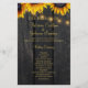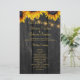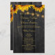 Elegante rustikale Hochzeitsfeier-Vorlage mit schönen hellgelben orangefarbenen Sonnenblumen und Streichern aus bunten Lichtern auf einem dunkelbraunen, ländlichem Hintergrund. +++++++++++++++++++++++ + Personalisieren Sie es mit Ihren Daten! ++++++++++++ Geeignet für rustikale Landschaft Vintager schick Sommergarten Herbst im Garten oder Bauernhochzeiten.