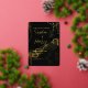 Hochzeitsfeier mit schwarzem und goldenem Drehbuch Folieneinladung