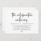 Modern Black Script themed, Hochzeit Einladung Karte (die Feier geht weiter). Es ist perfekt für Ihren Hochzeitsfeier Empfang / Post Hochzeitsfeier Party. Fügen Sie Ihre Daten in passender schwarzer Schriftart / Schrift hinzu.