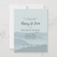 Einladung, den Neuvermählten am Morgen nach der Zeremonie bei einem "Hochzeitsbrunch" oder "Hochzeitsfrühstück" beizutreten. Die zarte Bergkulisse in grau-blauen Farben ist der Hintergrund für die individuelle Formulierung. Namen sind in modernen Schriften enthalten, die übrigen werden im Stil eines Schriftartes gedruckt. Die Rückseite ist massiv dunkelgrau-blau.
