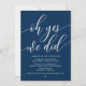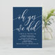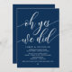 Schöne moderne einfache Navy Blue Kalligraphie, Hochzeitsfeier Ankündigung, Einladungskarte (Oh ja, wir haben es getan). Dies ist ideal für Ihren Hochzeitsempfang und Ihr Party nach der Hochzeit. Fügen Sie Ihre Daten in passender Schriftart / Schrift hinzu. #TeeshaDerrick