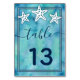 Diese individuell anpassbare Hochzeitskarte bietet einen weißen Seestern auf blauem Aquarellhintergrund mit blauer Tischnummer. Fügen Sie einfach Ihre Details hinzu, um ihm ein individuelles Gefühl und voila zu geben!