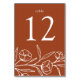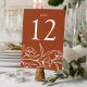 Elegante Blumenkarten mit weißgezeichneten Blume und Blätter am unteren Ende des Designs mit Terrakotta-Hintergrund. Personalisieren Sie die gezeichneten Blumenkarten mit der Tischnummer in klassischer Weißschrift. Um die Tischkarten zu bestellen, editieren und fügen Sie jede Zahl einzeln in Ihren Warenkorb ein, dann Karo aus, wenn Sie fertig sind. Entworfen, um mit unserer Hochzeitskollektion Sketched Floral zu koordinieren.