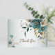 Hochzeitsfeier Türkis Weiße Blume Golden Blätter Dankeschön Karte. Einzigartiges, schönes, modernes Design. Leicht personalisiert zu sein. Schriftart Stil, Größe und Farben können geändert werden. Matching-Elemente verfügbar.