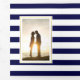 Moderner Starfish mit marineblau-weiß Streifen Strand dreimal Hochzeitseinladung. Das Cover dieses eleganten Designs zeigt einen runden, weißen Rahmen mit goldener Kontur, der Ihre Namen und ein Seesternpaar enthält. Die Innenwände sind mit Texten und Seestern mit gestreiften Rändern versehen, während die Außenhaut Ihr Foto beinhaltet. Es ist perfekt für eine Hochzeit am Strand.
