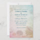 Lebende Meere, maßgeschneiderte Hochzeitseinladung mit Meeresleben-Design. Feine Naturfarben in Blau- und Rosatönen. Muscheln, Schildkröten und Korallen bilden einen atemberaubenden Rahmen mit tiefblauem Vorlagen. Dieses Design ist einzigartig in meinem Geschäft. Das Ehepaar lädt die Gäste ein, und die Formulierung beginnt: "Gemeinsam mit ihren Familien". Verwenden Sie entweder Vornamen oder vollständige Namen, die in Großbuchstaben gedruckt sind. Die nächste Zeile ist "Einladen zu ihren" mit der nächsten Zeile in handgeschriebener Schrift, "Hochzeit feiern". Fügen Sie den Tag, das Datum und den Ort in den folgenden Absatz, mit mehr Skript am unteren Rand für Empfang-Informationen. Das Gegenteil ist eine feste Sandfarbe.