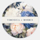 Navy Blue & Dusty Blush Pink Floral Wedding Classic Round Sticker