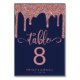 Hochzeitsfeiern mit Blue Rose Gold Dripping Glitze Tischnummer