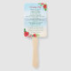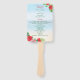 Geben Sie Ihren Gästen die Zeremonie Details mit diesen tropischen Hochzeitsfans am Strand. Hellroter und rosafarbener Hibiskus, weiße Pfützen und tropische Blätter prägen den hellen, tropischen Strand mit Aquarellfarben im Hintergrund. Text in der Farbkoordinierung ist leicht zu personalisieren.
