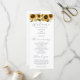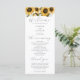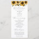 Rustikales Hochzeitsprogramm mit Aquarellbildern gelber Sonnenblumen mit Babyatmen. Alle Informationen über die Hochzeitsfeier und den Namen der Hochzeitsfeier auf diesem Programm aufgeführt.