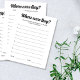 Fügen Sie Ihrer Hochzeit, Ihrer Verlobungsfeier oder Ihrem Brautparty eine Touch interaktiven Spaß bei unserem "Wo waren sie?" hinzu. Foto Guessing Game Flyer. Mit einem schicken Schwarz-Weiß-Design und eleganter Kalligrafie laden diese Flyer die Gäste ein, die Orte von 9 hochgeschätzten Fotos des Ehepaares zu erraten. Dieses Spiel ist perfekt, um Konversation zu stimulieren und fröhliche Erinnerungen zu schaffen. Es ist eine spannende Ergänzung zu jeder Feier. Pair diese Karten mit unserem passenden Poster "Wo waren sie?", das 9 Fotos des Paares zeigt, für einen nahtlosen und stilvollen Look. Leicht zu Set und zu spielen, erhöht dieses Spiel die festliche Atmosphäre und feiert die gemeinsame Reise des Paares. Ideal für Hochzeiten, Verlobungen und Brautpartys, unser Foto mit Spielkarten und Poster Set ist ein Muss, um Ihren besonderen Tag wirklich unvergesslich zu machen. Erschaffen Sie dauerhafte Erinnerungen und erfreuen Sie Ihre Gäste mit diesem einzigartigen Spiel!