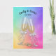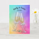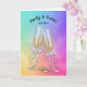 Hochzeitstoast mit Bogen auf Champagnergläsern und goldenen Hochzeitsringen auf abstraktem Regenbogen. Name und Hochzeitstermin können bearbeitet werden.