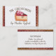 Käsekuchen mit Himbeeren, rosa Veilchen oder Blume mit extravaganten Rollen an dieser Visitenkarte für eine Bäckerei oder Zuhause-Backbiz für Hochzeiten, Geburtstage und andere Veranstaltungen.