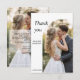 Eine Hochzeitsdanksagungskarte mit einem schönen Foto von Braut und Bräutigam in einem eleganten Rahmen. Fügen Sie eine persönliche Dankesnachricht und Ihr Hochzeitsfoto hinzu.