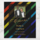 Feiern Sie mit personalisierten Hochzeits-Weinetiketten, die die Namen der Bräutigams, das Hochzeitsdatum, das Hochzeitsfoto und die wählbare Rebsorte zeigen. Fette diagonale Regenbogenstreifen auf schwarzem Hintergrund mit eleganter Schreibschrifttypografie schaffen ein modernes, männliches Design, das Weinflaschen in unvergessliche Hochzeitsgeschenke oder Dekorationen für den Empfangstisch verwandelt. Vollständig anpassbar mit Ihren Namen, dem Feierdatum, Foto und Weinart (Cabernet, Chardonnay, Verschnitt usw.). Perfekt für zeitgenössische LGBTQ-Paare, die einzigartige, persönliche Hochzeitsgeschenke schaffen, die ihre Gäste in Ehren halten werden. Passt wunderbar zu unserer kompletten Gay Men Wedding Collection.